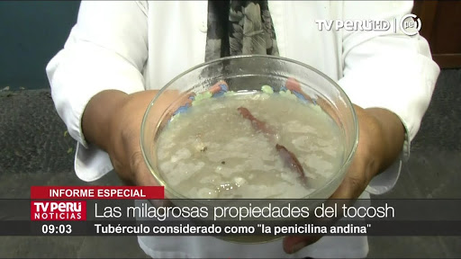 El tocosh, es obtenido a través de la pulpa de la papa fermentada. Este tubérculo, es considerado un alimento rico en hierro, vitamina D, C, B6, magnesio y potasio, sustancias que transforman a este producto en la penicilina natural al curar enfermedades como ulceras, gastritis, problemas respiratorios, caída de cabello, posibles enfermedades a la piel y evitar la osteoporosis.