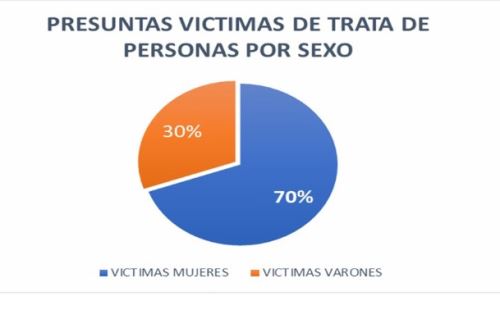 Pero la trata de personas tiene rostro de mujer y eso se evidencia también en las estadísticas proporcionadas a la agencia Andina: el 70% de las víctimas son mujeres y el 30% varones.