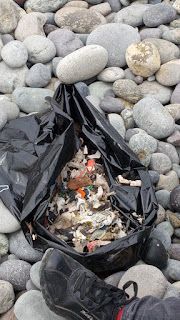 Salud en Casa.- La Playa Carpayo parecía limpia, pero al remover las piedras, los voluntarios encontraron miles de microplasticos y microbasura marina que fueron recogiendo con suma paciencia para eliminar estos contaminantes que pueden ser engreídos por peces y otras especies marinas.