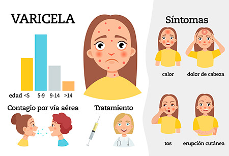 La Varicela-Zóster (VVZ) se propaga vía aérea y tiene tres etapas: la de incubación; que suele durar entre 10 a 21 días después de haber tenido contacto con alguien infectado, la etapa eruptiva; cuando comienza a aparecer ampollas en la piel, acompañadas de picazón; y la etapa de seca; cuando las ampollas se convierten en costras y se desprenden de la piel. Asimismo, la varicela provoca erupciones en la piel, picazón, cansancio y fiebre.