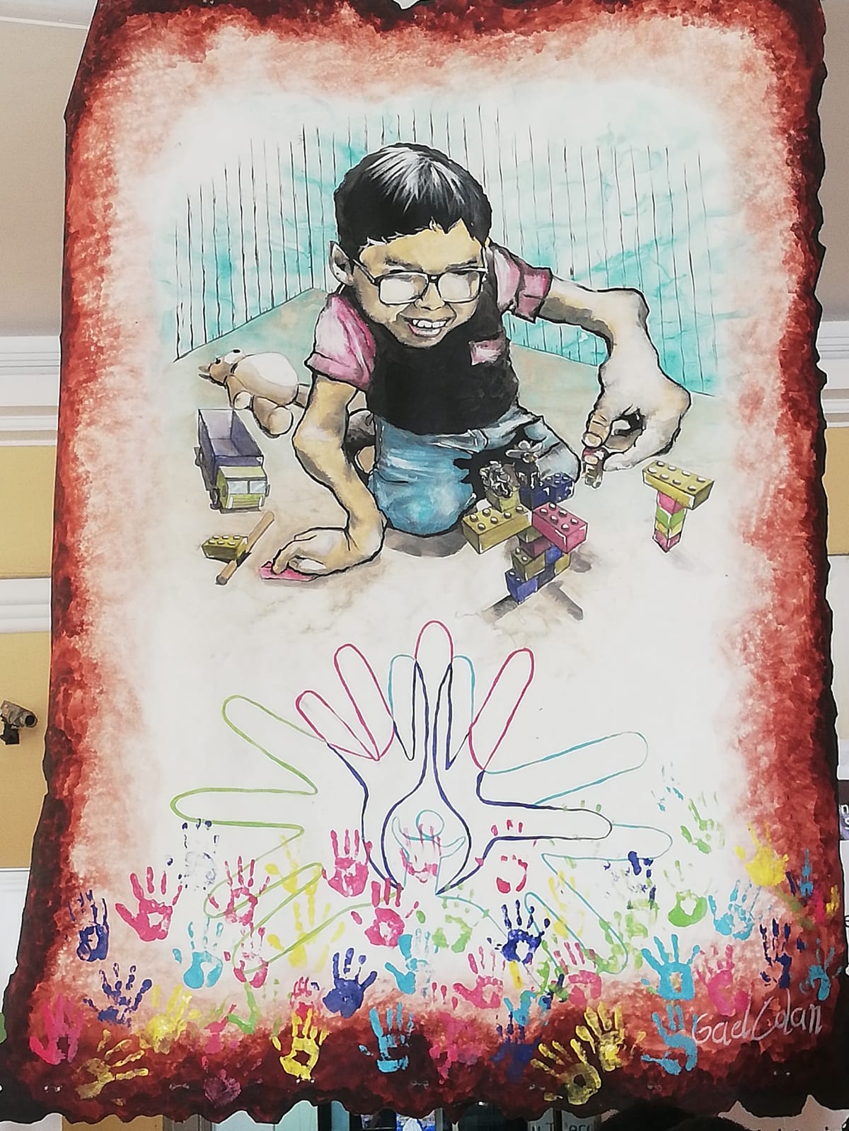 Gael Colán fue el artista que estuvo detrás de los quince personajes infantiles que aparecen en diferentes posiciones, jugando y divirtiéndose, en las paredes y puertas de todo el Instituto de Rehabilitación San Juan de Dios Piura, de la Fundación Teletón, que se inauguró en 2019 y que es considerado el centro de rehabilitación infantil más moderno del norte del país.