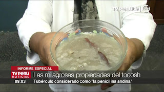 El tocosh, es obtenido a través de la pulpa de la papa fermentada. Este tubérculo, es considerado un alimento rico en hierro, vitamina D, C, B6, magnesio y potasio, sustancias que transforman a este producto en la penicilina natural al curar enfermedades como ulceras, gastritis, problemas respiratorios, caída de cabello, posibles enfermedades a la piel y evitar la osteoporosis.