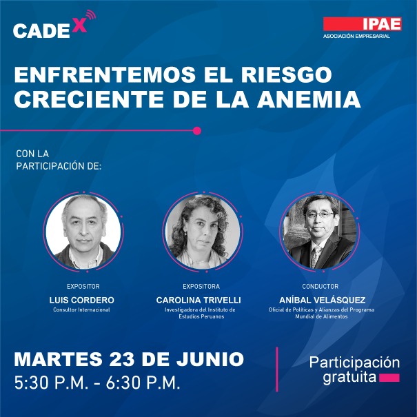 Salud en Casa.- La anemia es uno los más grandes problemas que afronta el Perú en materia de Salud Pública y que, en los últimos años, no se ha logrado reducir significativamente. IPAE Asociación Empresarial presenta CADEx: El riesgo creciente de la anemia. En el evento se revisarán alternativas de estrategias y políticas para minimizar el incremento de este mal, pues la crisis económica y empobrecimiento agudizados por la pandemia del COVID-19, torna aún más vulnerables a millones de hogares.