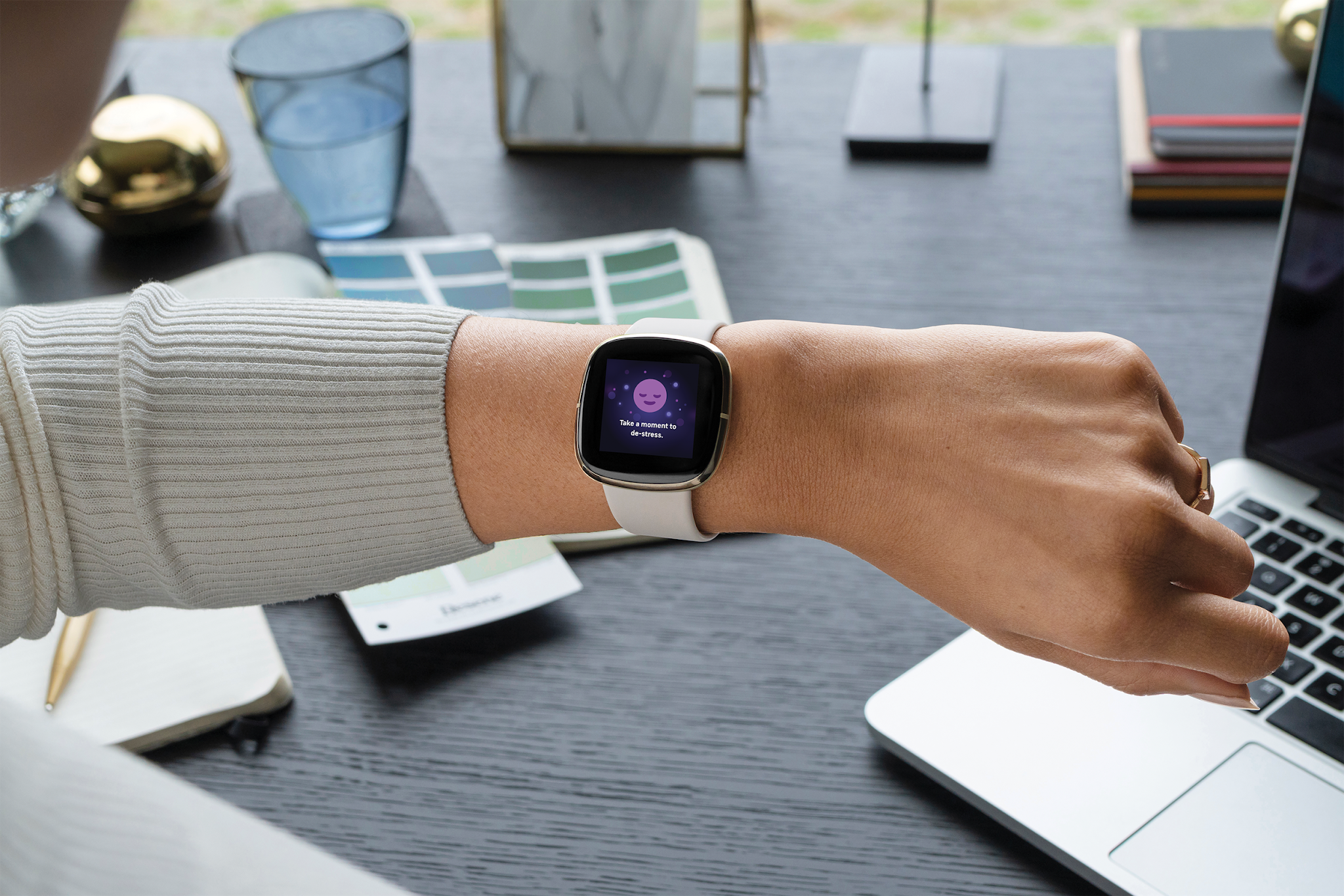 Cuando evalúas una situación como un factor de estrés, tu sistema nervioso simpático libera hormonas del estrés, como la adrenalina y el cortisol, para prepararte para una respuesta de "lucha o huida". Este proceso puede causar todo tipo de cambios en tu cuerpo, que se pueden medir con dispositivos portátiles a través de métricas como la variabilidad de la frecuencia cardíaca y la actividad electro dérmica o EDA, que se mide con un nuevo sensor en Fitbit Sense.